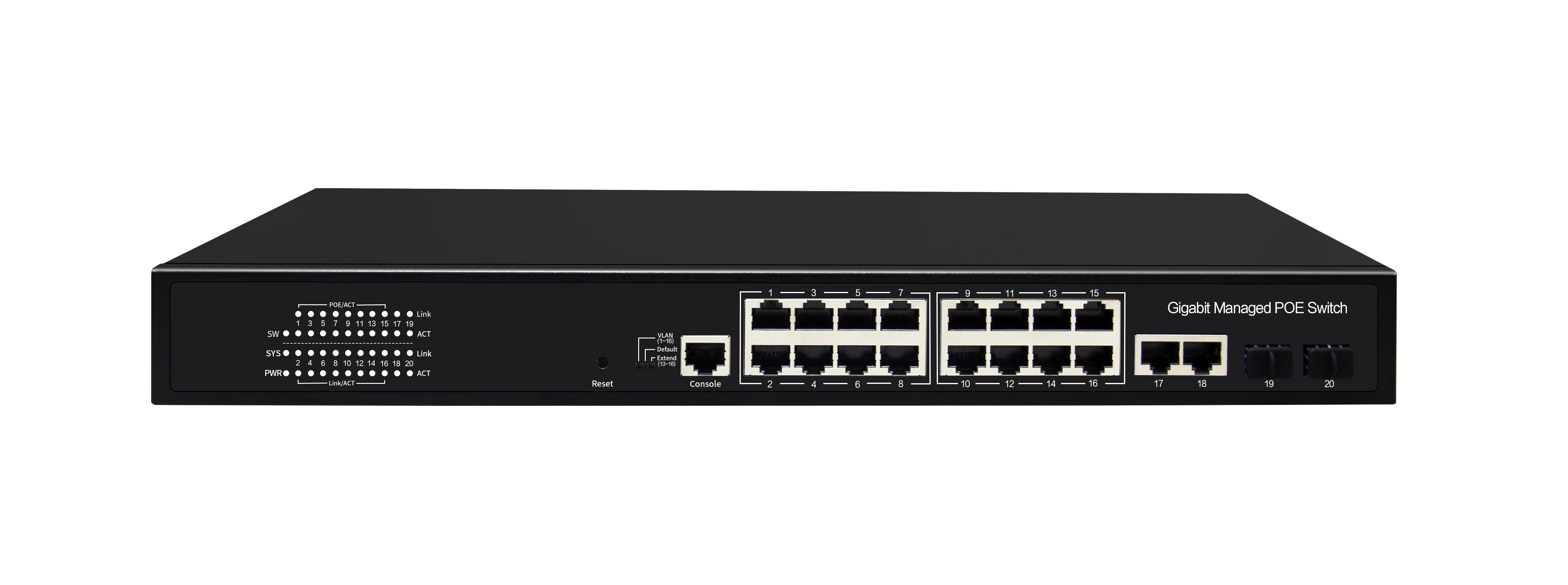 16個千兆PoE網(wǎng)口+2個千兆上行網(wǎng)口+2個千兆SFP光口+1個Console口網(wǎng)管型商業(yè)級POE交換機